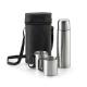 Set compuesto por 1 termo y 2 tazas en acero inoxidable. Las tazas disponen de una capacidad de hasta 200ml y el termo con doble pared, tiene capacidad de hasta 500 ml. Se suministra en una funda de poliéster 600D con asa ajustableRecipiente :