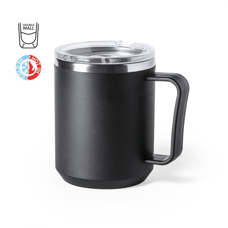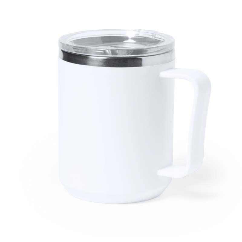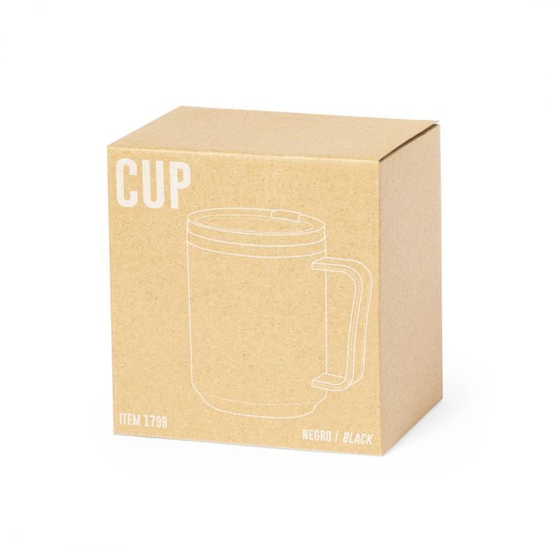 Taza térmica de de doble pared y 350ml de capacidad. Exterior en resistente PP e interior en acero inox. Con dosificador en tapa y libre de BPA. Disponible en colores mate y presentada en caja individual de diseño kraft.