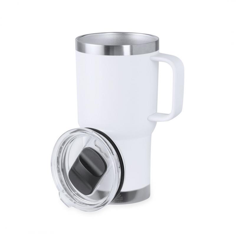 Taza térmica de Acero Inox Reciclado, con doble pared y 600 ml de capacidad. Incluye tapa con cierre a presión, dosificador y asa rígida para mayor comodidad. Disponible en variada gama de colores de acabado mate. Con logotipo Acero Inox Reciclado y presentada en atractiva caja de diseño kraft. El acero es uno de los materiales más demandados y que puede encontrarse casi en todas partes, desde productos de uso diario a grandes construcciones. Con innumerables propiedades, entre las que cabe destacar la durabilidad y su alto grado de reutilización, convirtiéndolo en una alternativa muy valorada en soluciones de sostenibilidad. Debidamente tratado, permite obtener nuevos recursos de infinita utilización.