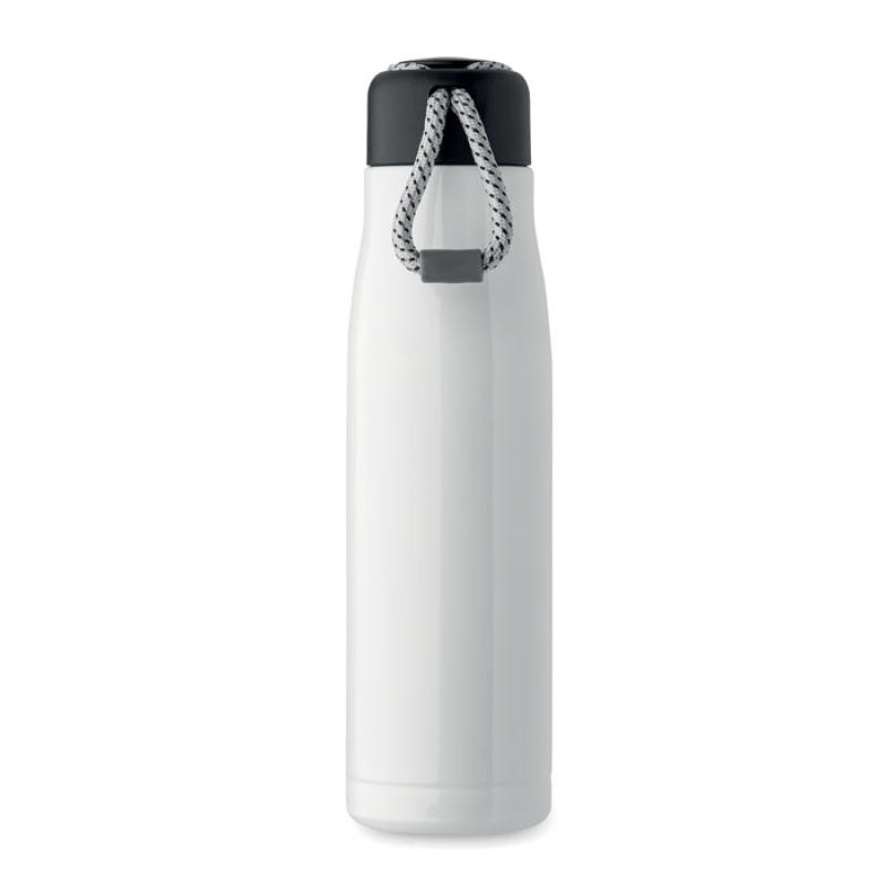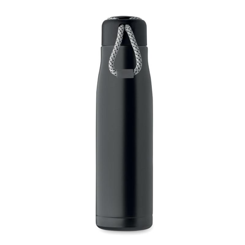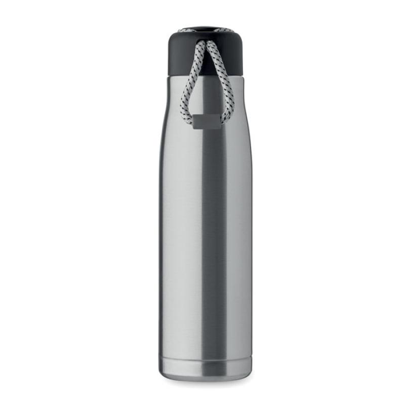 Botella de doble pared aislada al vacío de acero inoxidable reciclado (90% de acero inoxidable reciclado y 10% de acero inoxidable) con asa de cordón integrada en la tapa de PP. Antifugas. Capacidad: 500 ml.Recipiente :