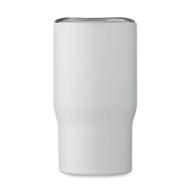 Vaso de doble pared en acero inoxidable reciclado (90% acero inoxidable reciclado y 10% acero inoxidable) con asa de madera y boquilla con cierre deslizante. Capacidad: 350 ml.Recipiente :