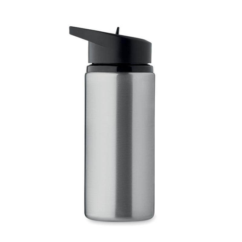 Botella de acero inoxidable reciclado (90% acero inoxidable reciclado y 10% acero inoxidable) de pared simple con boquilla plegable en la tapa, pajita y asa de transporte. Capacidad: 500 ml.Recipiente :