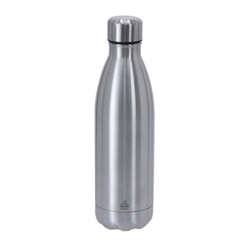 Bidón térmico de 790 ml de capacidad, fabricado en Acero Inox Reciclado. Con acabado mate.Incluye distintivo de acero inoxidable reciclado.El acero es uno de los materiales más demandados y que puede encontrarse casi en todas partes, desde productos de uso diario a grandes construcciones. Con innumerables propiedades, entre las que cabe destacar la durabilidad y su alto grado de reutilización, convirtiéndolo en una alternativa muy valorada en soluciones de sostenibilidad. Debidamente tratado, permite obtener nuevos recursos de infinita utilización.
