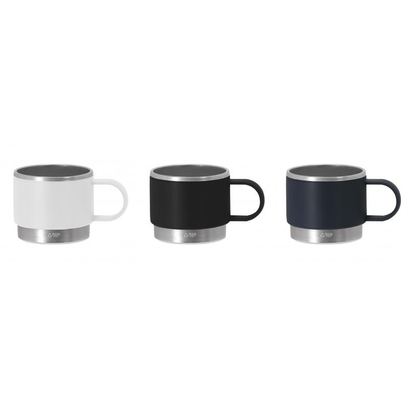 Taza de PP reciclado, combinado con base de acero inoxidable reciclado. Con 140 ml de capacidad. Incluye distintivo Acero Inox Reciclado.El PP reciclado es un plástico reciclado y altamente reciclable, de gran resistencia y apto para multitud de aplicaciones.El acero es uno de los materiales más demandados y que puede encontrarse casi en todas partes, desde productos de uso diario a grandes construcciones. Con innumerables propiedades, entre las que cabe destacar la durabilidad y su alto grado de reutilización, convirtiéndolo en una alternativa muy valorada en soluciones de sostenibilidad. Debidamente tratado, permite obtener nuevos recursos de infinita utilización.