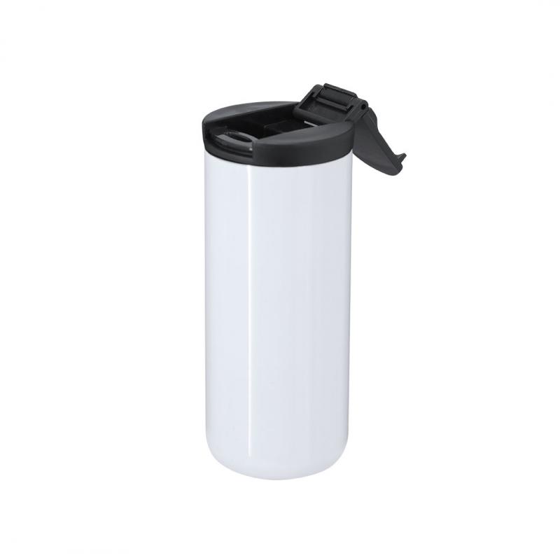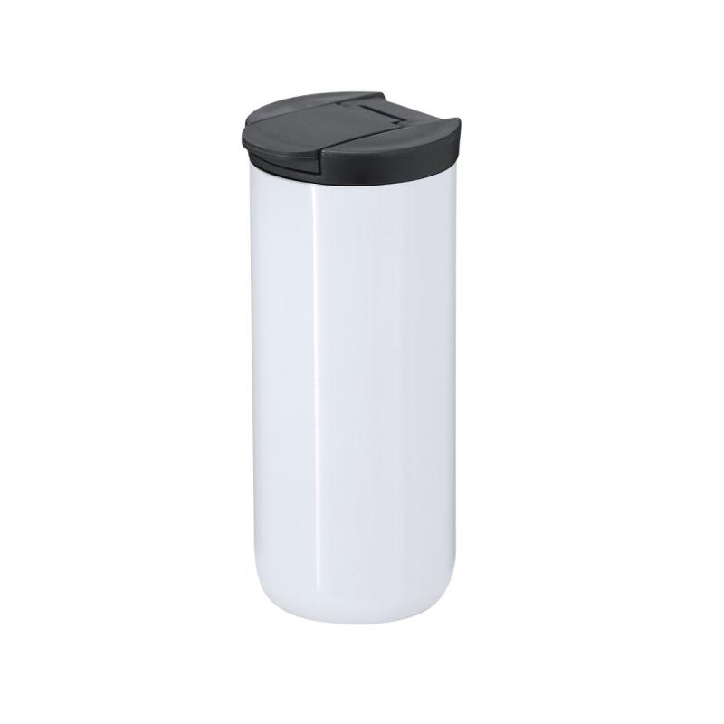 Vaso térmico fabricado en acero inox de doble pared y 370ml de capacidad. Especialmente diseñado para marcaje en sublimación, acabado en blanco brillo. Equipado con un dosificador en la tapa de color negro, diseñado para evitar fugas y libre de BPA.
