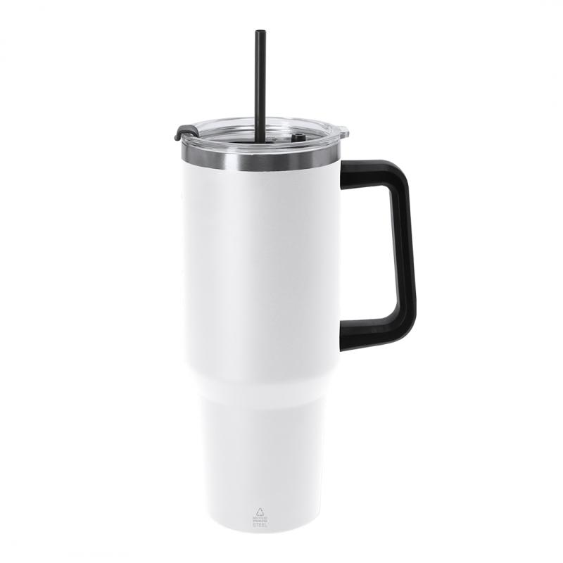 Jarra térmica de 1,2 L de capacidad. Fabricada en Acero Inoxidable Reciclado. Cuenta con doble sistema de bebida: orificio con cierre hermético y pajita integrada, adaptándose a las preferencias de uso. Incluye asa de transporte ergonómica de PP para mayor comodidad. Libre de BPA. Incluye distintivo acero inoxidable reciclado. El acero es uno de los materiales más demandados y que puede encontrarse casi en todas partes, desde productos de uso diario a grandes construcciones. Con innumerables propiedades, entre las que cabe destacar la durabilidad y su alto grado de reutilización, convirtiéndolo en una alternativa muy valorada en soluciones de sostenibilidad. Debidamente tratado, permite obtener nuevos recursos de infinita utilización.