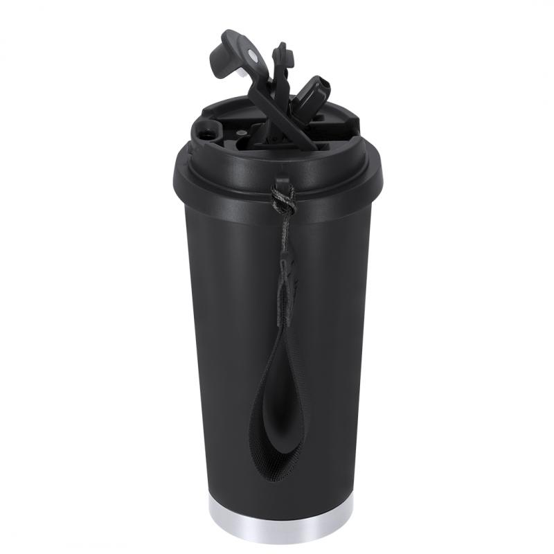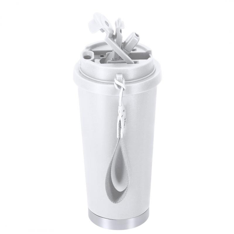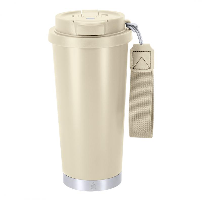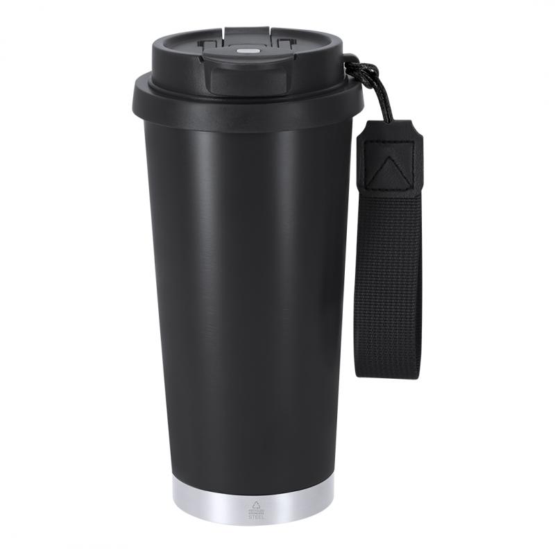 Vaso térmico con 500 ml de capacidad. Fabricado en Acero Inoxidable Reciclado. Cuenta con doble sistema de bebida: orificio con cierre hermético y pajita integrada, adaptándose a las preferencias de uso. Con tapa de sistema de sellado hermético.Incluye práctica cinta de transporte, ideal para llevarlo fácilmente en cualquier situación. Libre de BPA. Con distintivo Acero Inoxidable Reciclado. El acero es uno de los materiales más demandados y que puede encontrarse casi en todas partes, desde productos de uso diario a grandes construcciones. Con innumerables propiedades, entre las que cabe destacar la durabilidad y su alto grado de reutilización, convirtiéndolo en una alternativa muy valorada en soluciones de sostenibilidad. Debidamente tratado, permite obtener nuevos recursos de infinita utilización.
