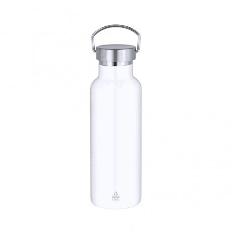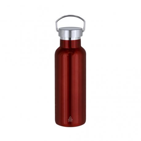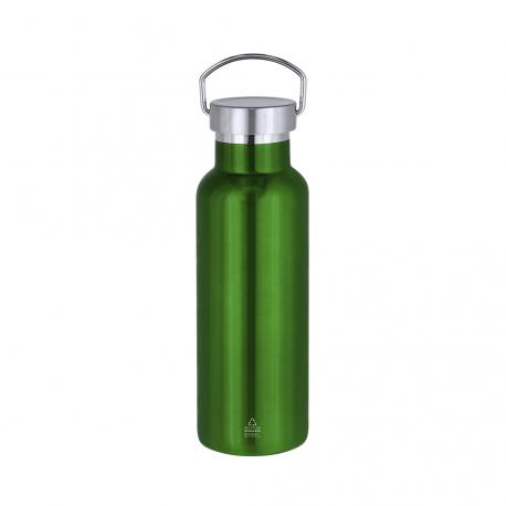Bidón térmico fabricado en Acero Inoxidable Reciclado de doble pared y 500 ml de capacidad. Acabado en vivos colores con efecto metalizado. Tapón a rosca equipado con asa de trasporte. Incluye distintivo Acero Inoxidable Reciclado. El acero es uno de los materiales más demandados y que puede encontrarse casi en todas partes, desde productos de uso diario a grandes construcciones. Con innumerables propiedades, entre las que cabe destacar la durabilidad y su alto grado de reutilización, convirtiéndolo en una alternativa muy valorada en soluciones de sostenibilidad. Debidamente tratado, permite obtener nuevos recursos de infinita utilización.