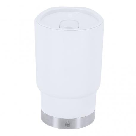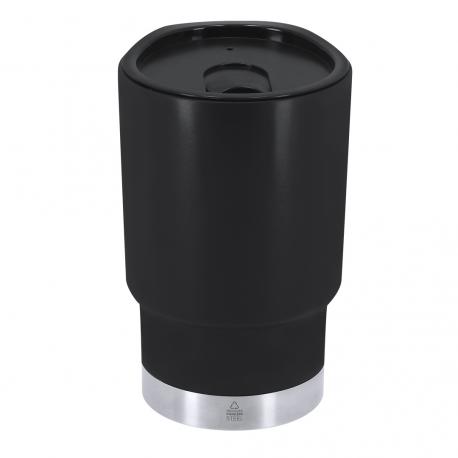 Vaso térmico de 380 ml de capacidad. Fabricado en resistente PP Reciclado de doble pared en combinación con base en Acero Inox Reciclado. Tapa con dosificador de fácil apertura, libre de BPA. Es ideal para tener en tu escritorio, mesa o en cualquier superficie donde disfrutar tranquilamente de tu bebida favorita. Con certificación Food Grade, garantizando la seguridad cuando los alimentos entran en contacto con el material usado para fabricar el producto. Con distintivo de Acero Inox Reciclado. El PP reciclado es un plástico reciclado y altamente reciclable, de gran resistencia y apto para multitud de aplicaciones. El acero es uno de los materiales más demandados y que puede encontrarse casi en todas partes, desde productos de uso diario a grandes construcciones. Con innumerables propiedades, entre las que cabe destacar la durabilidad y su alto grado de reutilización, convirtiéndolo en una alternativa muy valorada en soluciones de sostenibilidad. Debidamente tratado, permite obtener nuevos recursos de infinita utilización.