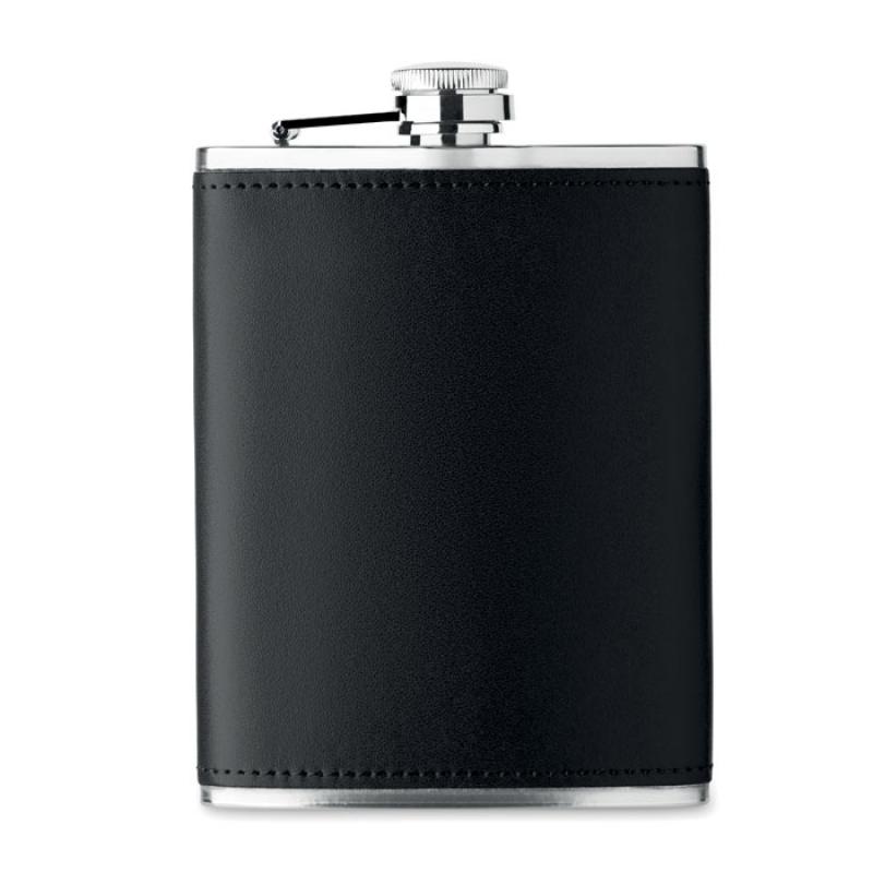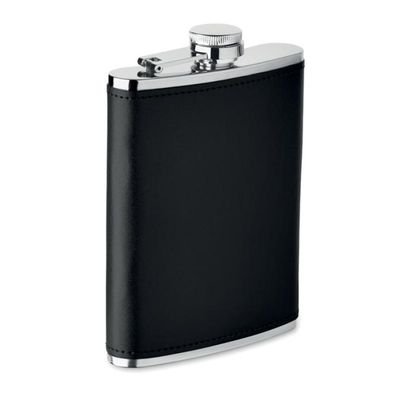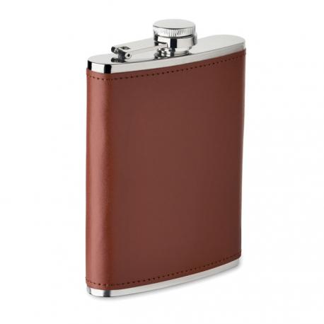 Petaca de acero inoxidable con tapa de cuero PU. Capacidad de 200 ml.Recipiente :