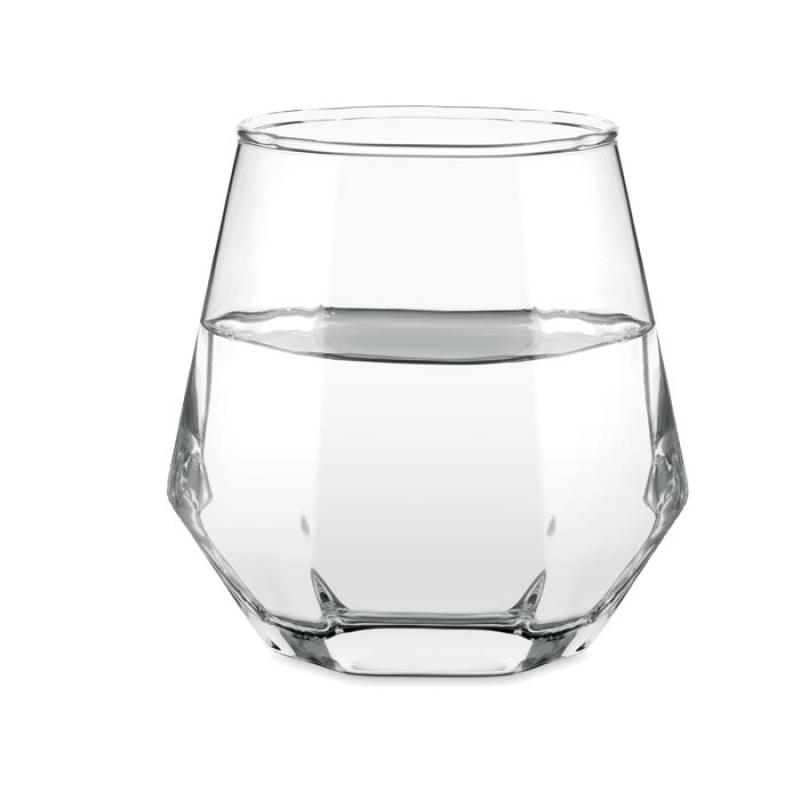 Vaso corto inclinado en forma de rombo geométrico. Para whisky u otros licores. Capacidad: 300 ml.Recipiente :