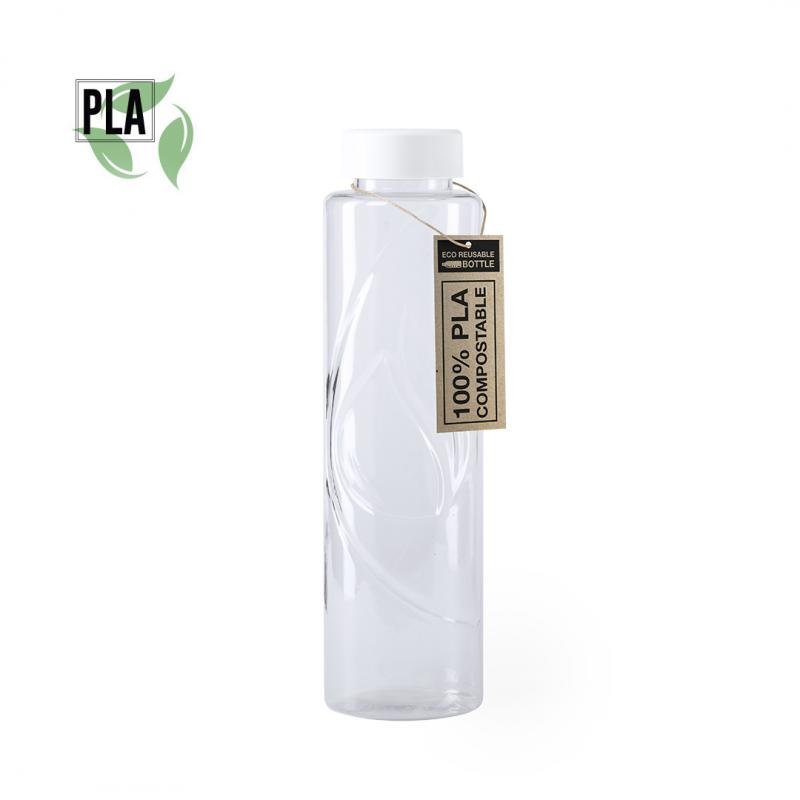 Bidón de linea nature de 830 ml de capacidad. Fabricado en resistente material PLA -Ácido PoliLáctico-, que se obtiene a partir de recursos 100% naturales como el almidón de maíz, la yuca o la caña de azúcar, pudiendo convertirse en 100% compostable al final de su ciclo de vida útil. Con distintivo PLA y presentado en bolsa individual de diseño eco.