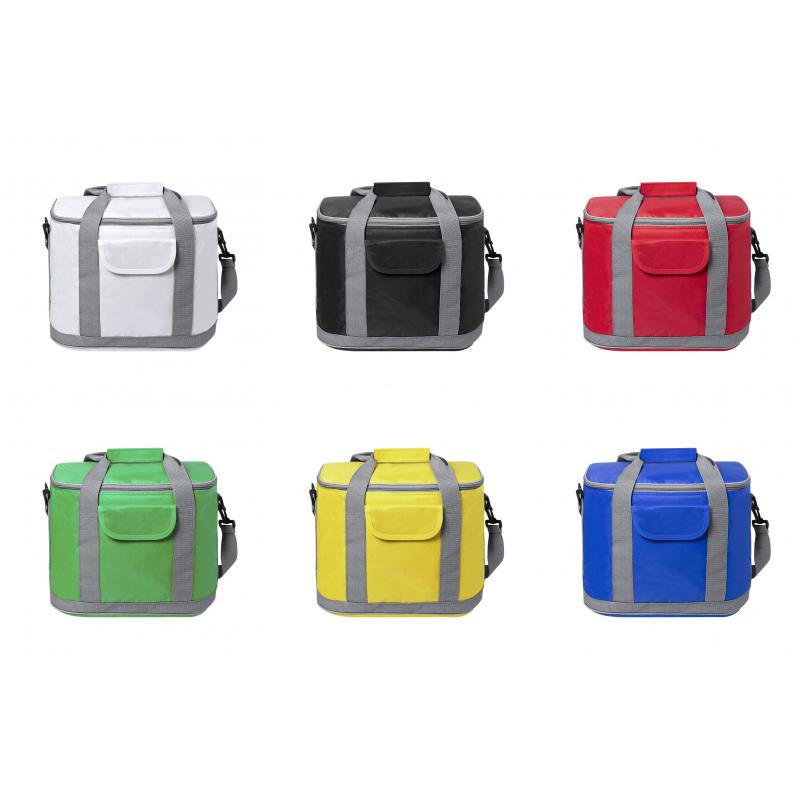 Nevera todoterreno en resistente poliéster 420D, con compartimento principal de cierre de cremallera y bolsillo en parte frontal con cierre de velcro. Interior isotermo en PEVA, con cinta para hombro ajustable y mosquetón de enganche. Resistencia hasta 8kg de peso.