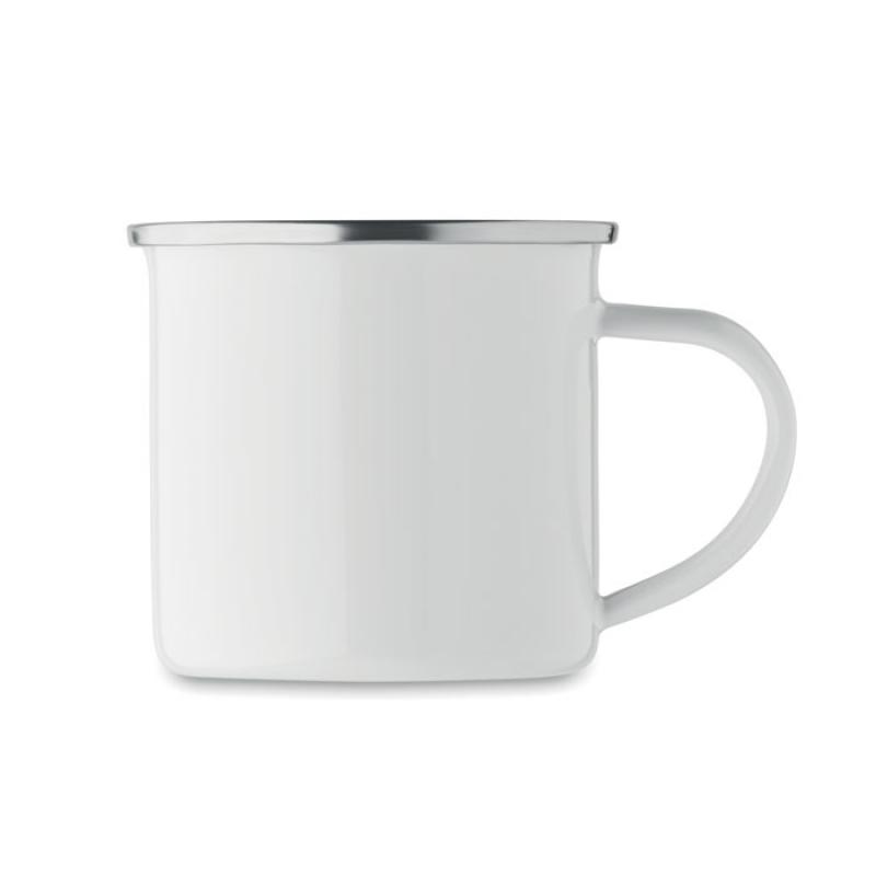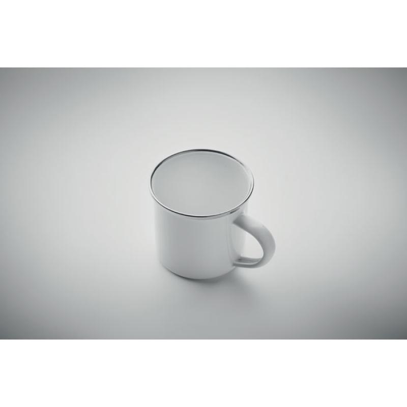 Taza vintage en esmalte de metal sublimado. Capacidad de 200 ml.Recipiente :