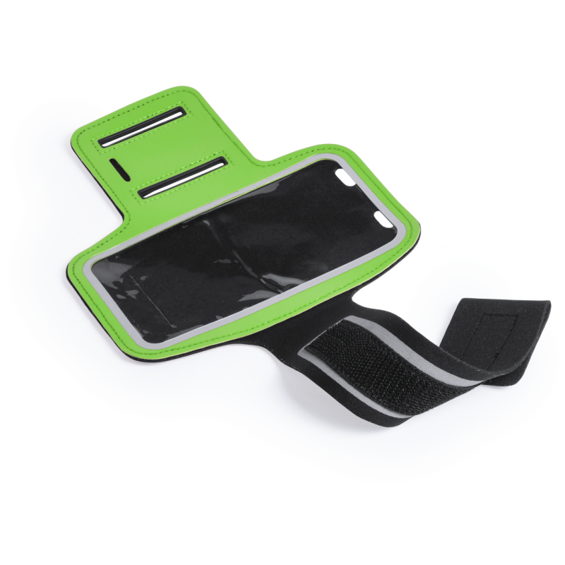 Brazalete deportivo táctil, diseñado para dispositivos con pantalla de hasta 6 pulgadas. Frontal reflectante, con tira de cierre elástica y ajustable, y bolsillo para llaves. Disponible en variada gama de colores.