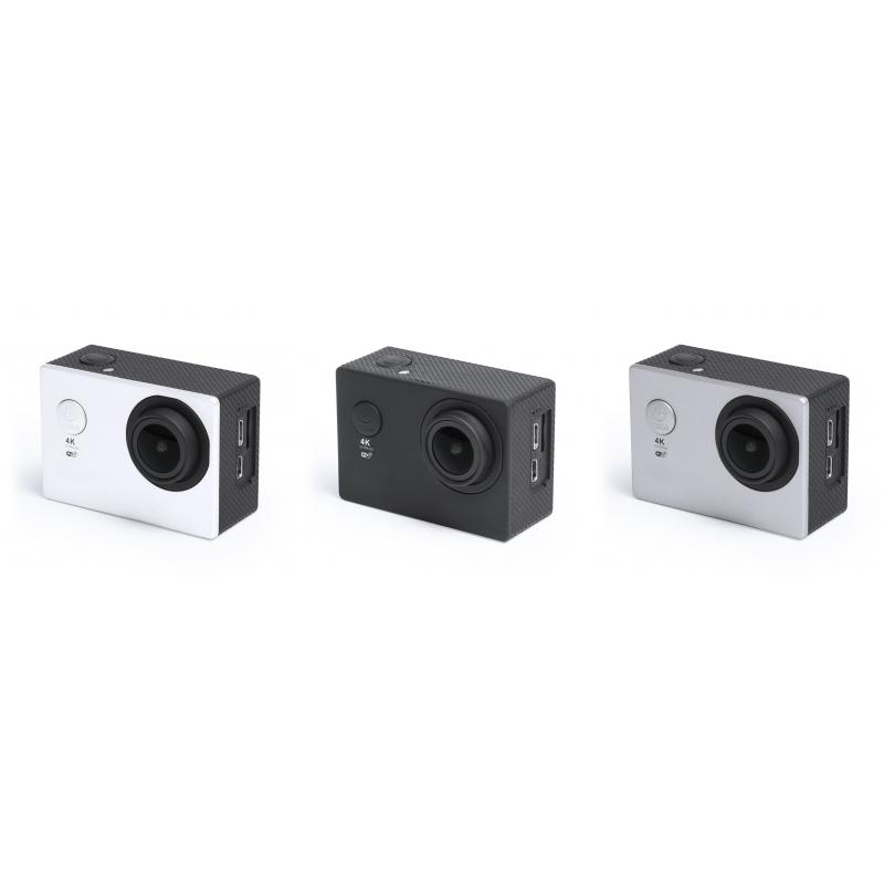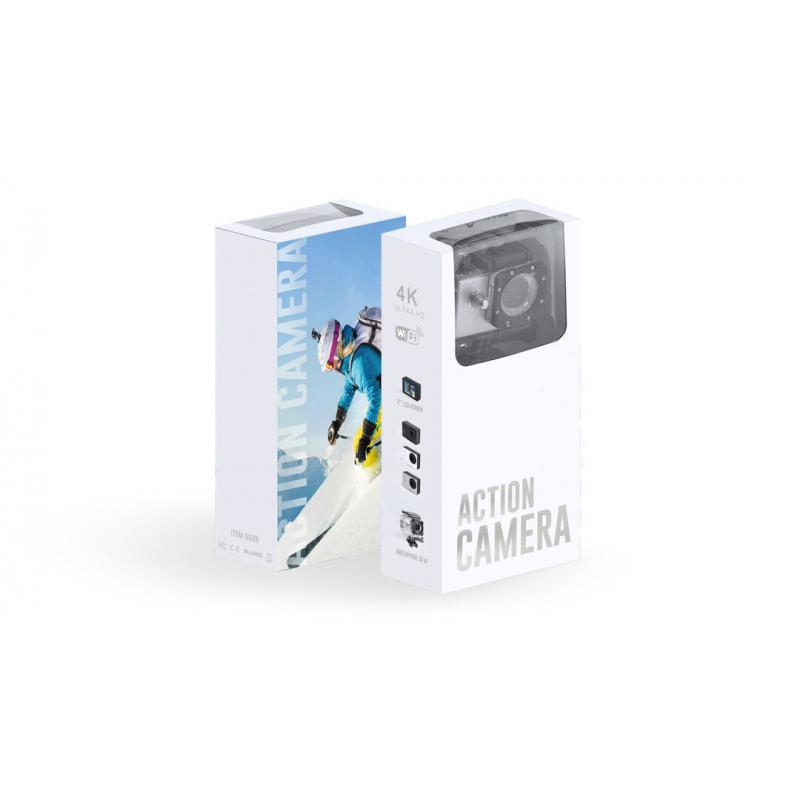 Cámara deportiva de alta calidad de captura de vídeo HD 4K, de diseño compacto y resistente, especialmente diseñada para uso intensivo. Incluye carcasa sumergible hasta 30m de profundidad y multitud de accesorios para ajuste en casco, manillar o cinturón, así como correas ajustables para cabeza y torso o un adaptador giratorio de 360º. La versatilidad y resistencia de esta cámara deportiva la convierten en el gadget perfecto para capturar, con una calidad excepcional, cualquier actividad deportiva. Con función cámara de fotos Full HD 1080p, ranura para tarjetas micro SD de hasta 64 GB de capacidad, pantalla LCD de 2 pulgadas, sistema multilenguaje, y recargable mediante cable mini USB -incluido-. Presentada en atractiva caja de diseño.