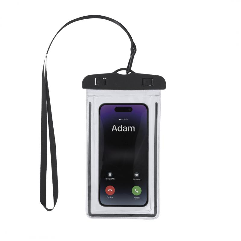 Portatodo impermeable fabricado en PVC, diseñado con función táctil para facilitar el uso de dispositivos. Con sistema de seguridad con cierre de palancas para una buena estanqueidad. Compatible con pantallas de hasta 6,7 pulgadas. Incluye cordón y mosquetón a juego para mayor comodidad.