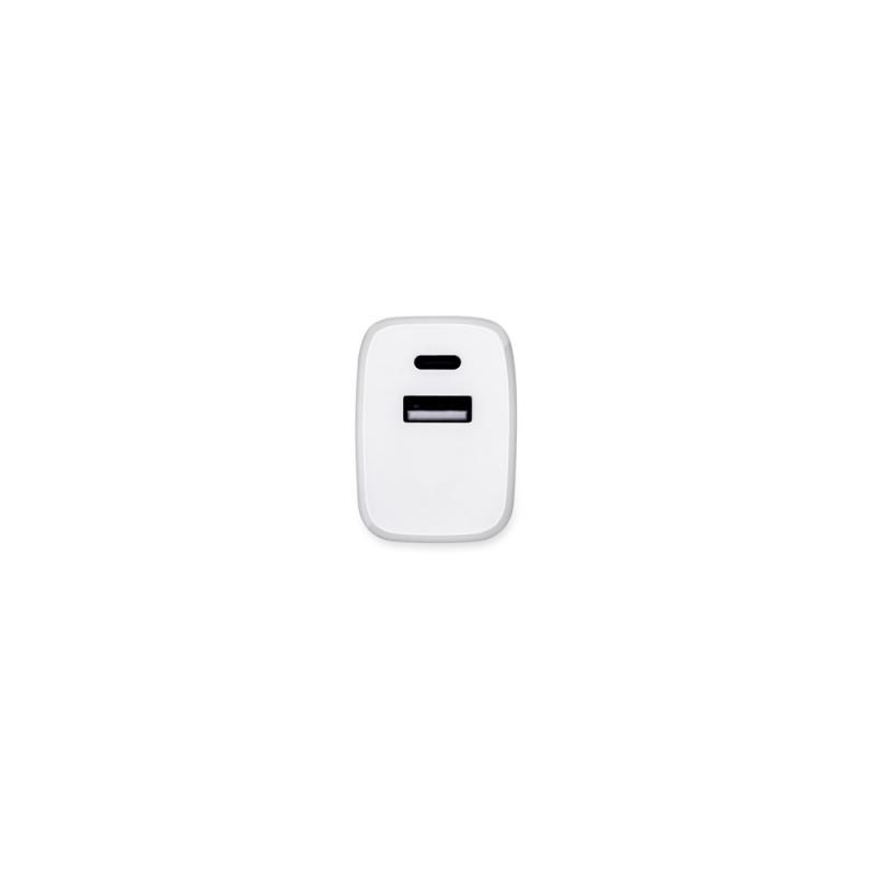 WEGENER. Adaptador de corriente con puerto USB-A de 18 W y USB-C de 20 W en ABS reciclado (100% rABS)