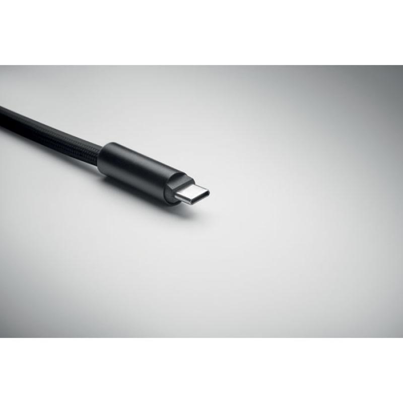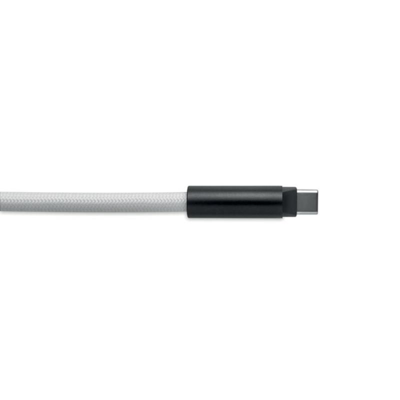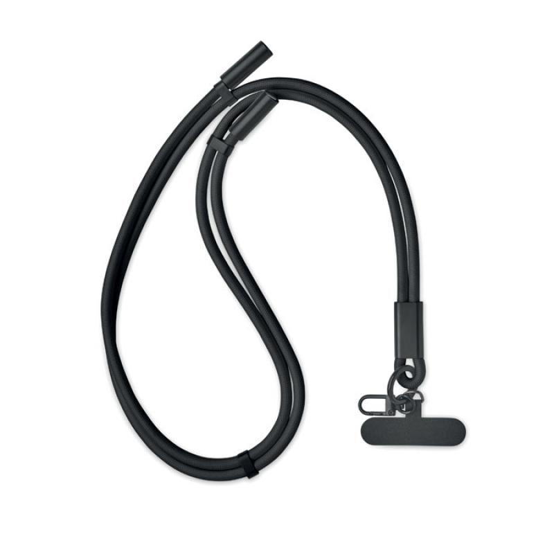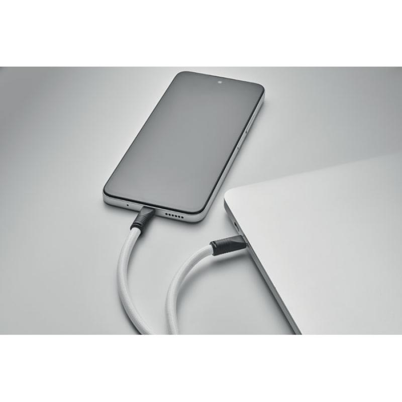 Lanyard con cable de carga y transferencia de datos de 60 W de tipo C a tipo C en RPET con soporte para cable de teléfono y clip para llaves.Recipiente :