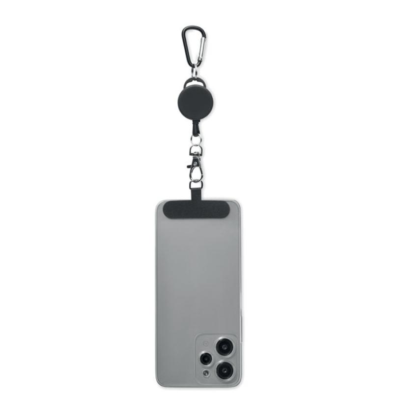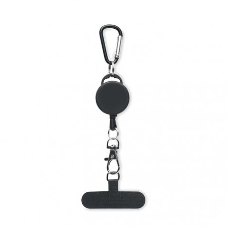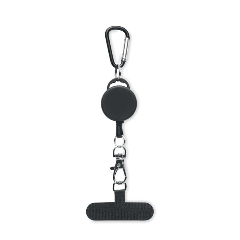 Soporte retráctil para teléfono y/o tarjeta identificativa en ABS con mosquetón de aluminio. El mosquetón no es para escalada (uso no profesional).Recipiente :