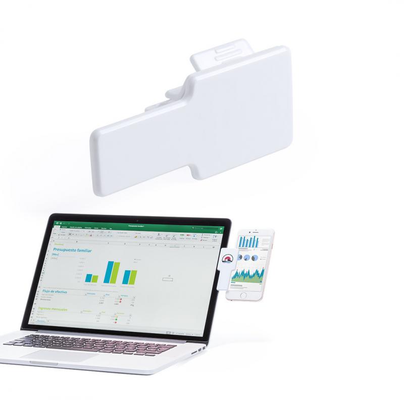 Soporte para smartphone con pinza de fijación extra firme para acople a pantalla de ordenador o tablet. Con amplia superficie de marcaje.