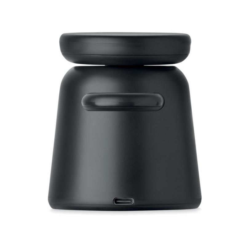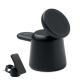 Base de carga 3 en 1 en ABS. Incluye cargador inalámbrico magnético de 15 W para teléfono y TWS con función de soporte para teléfono y cargador para smartwatch (solo iOS). Función magnética compatible con iPhone® 12 y posteriores.Recipiente :