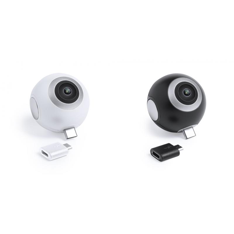 Cámara 360° con conexión Tipo-C y adaptador micro USB para dispositivos móviles Android. De alta calidad de captura de vídeo 360° con resolución HD 2048x1024p, especialmente diseñada para uso intensivo. APP disponible para disfrutar de los vídeos filmados en 360° en gafas de realidad virtual compatibles -no incluidas-. Presentada en atractiva caja de diseño.