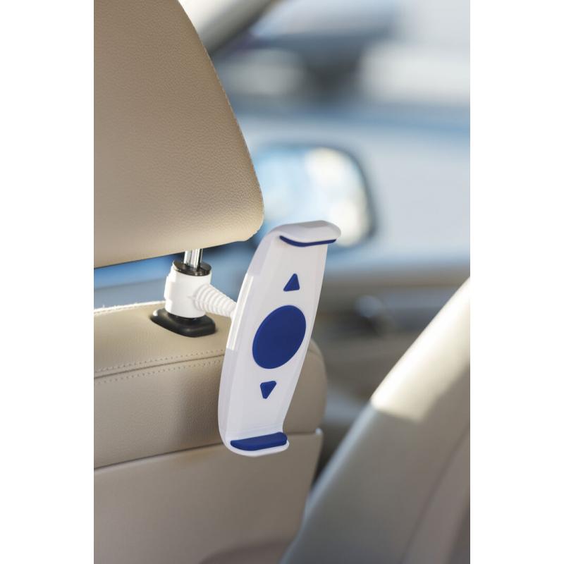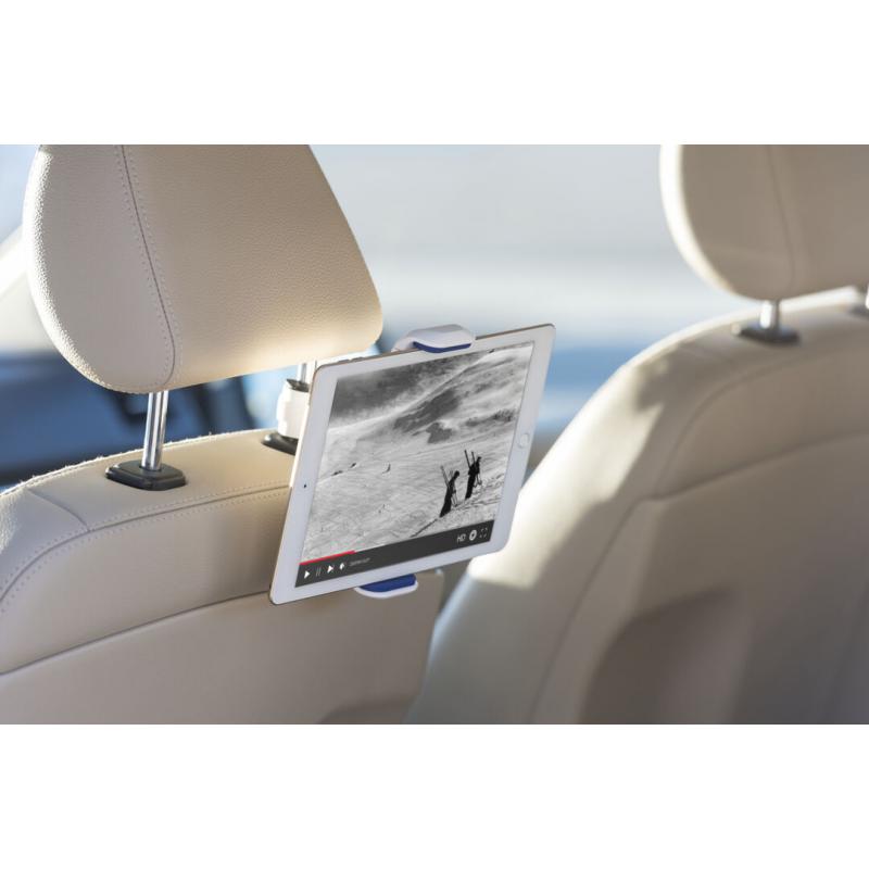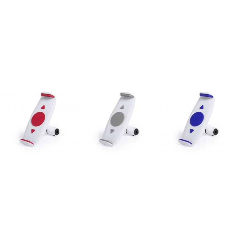 Original soporte para dispositivos móviles de hasta 10 pulgadas para acople a la barra del cabecero del coche. En variada gama de colores, giratorio 360º y con gomas anti deslizantes de alta sujeción.
