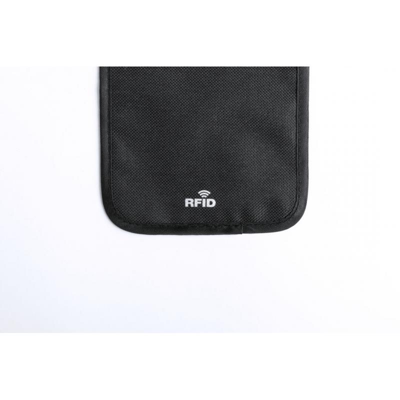 Funda de seguridad con protección RFID (Identificación por Radio Frecuencia) que mantiene seguros los datos de tarjetas y otros dispositivos. En variada gama de colores y en resistente poliéster. Tamaño ideal para smartphone y pequeños objetos.
