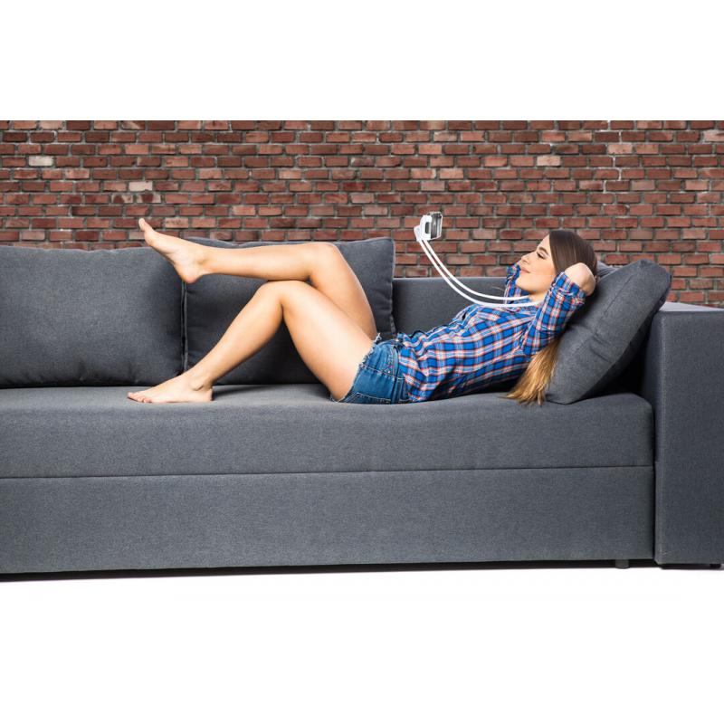 Soporte flexible multiusos para dispositivos móviles. De diseño ergonómico y flexible, muy versátil y cómodo de usar. Soporte para dispositivo móvil de excelente fijación, con acolchado antideslizante. Presentado en atractiva caja de diseño.