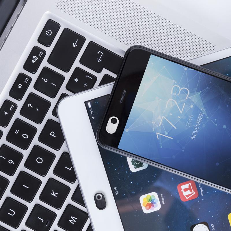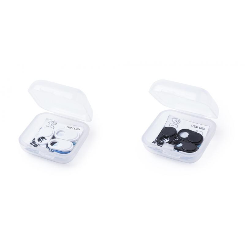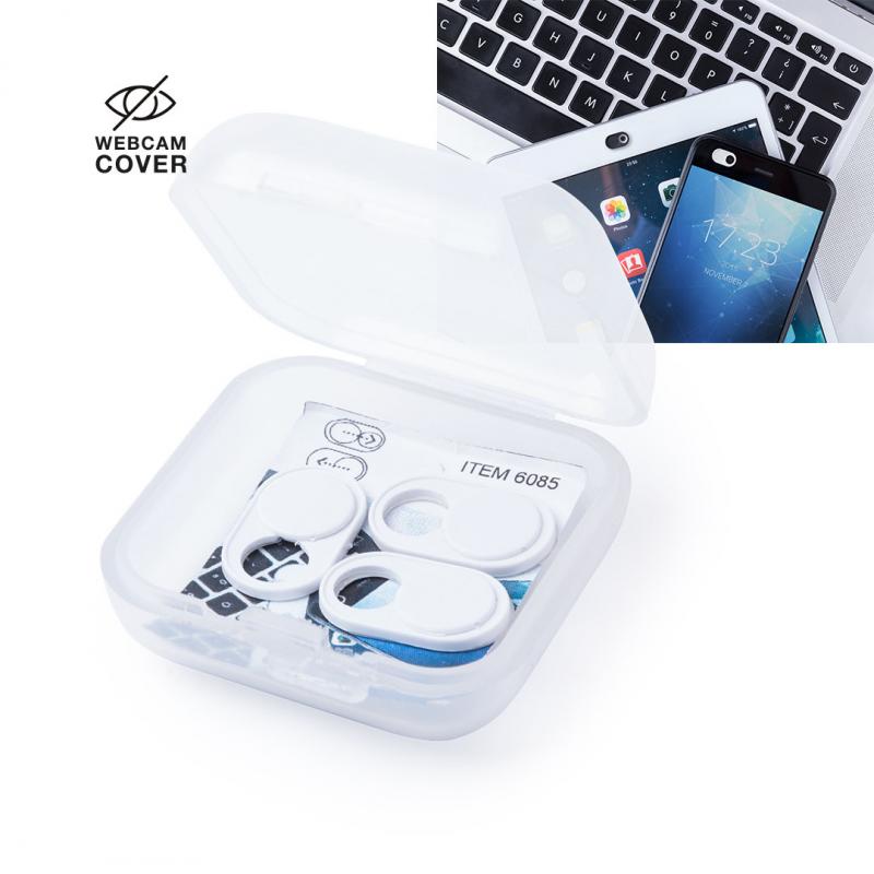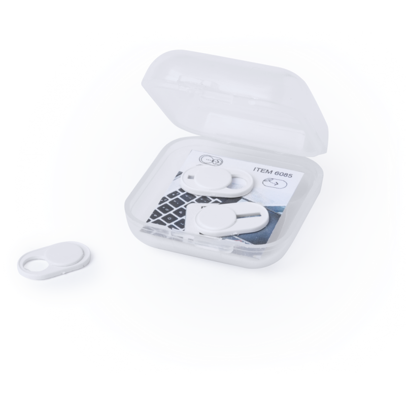 Tapa para cámara de dispositivo móvil para proteger la privacidad. En tamaño ultra compacto y servida en estuche individual de achado translúcido con 3 piezas. Disponible en colores blanco y negro, set presentado en bolsita individual con cartulina de diseño.