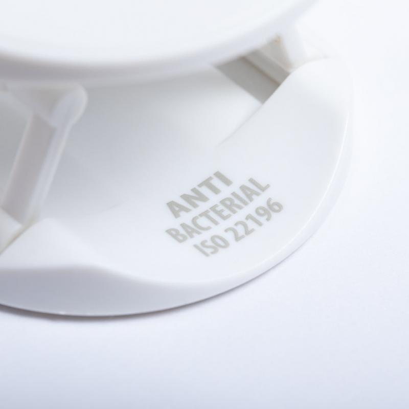 Soporte antibacteriano para smartphone. Diseño plegable en elegante acabado de color blanco, especialmente diseñado para marcaje en tampografía. Con adhesivo 3M, de fijación extra fuerte y libre de residuos al despegarlo del dispositivo.Los productos con tratamientos antibacterianos son capaces de reducir drásticamente las cargas bacterianas presentes en las superficies de los materiales, gracias a la incorporación de agentes microbianos permanentes estáticos, con alta efectividad para inhibir y prevenir la contaminación bacteriana.Artículo de acuerdo al estándar ISO 22196, que determina la actividad antibacteriana en materiales plásticos y superficies no porosas, lo que permite conocer la efectividad de inhibición microbiana que tienen los aditivos sobre los objetos tratados mediante una evaluación cuantitativa.