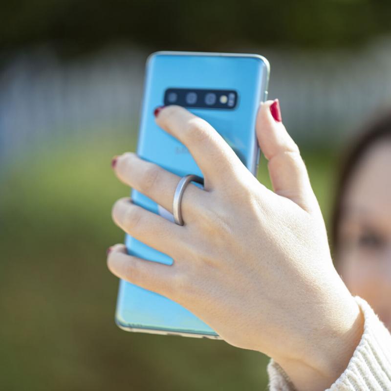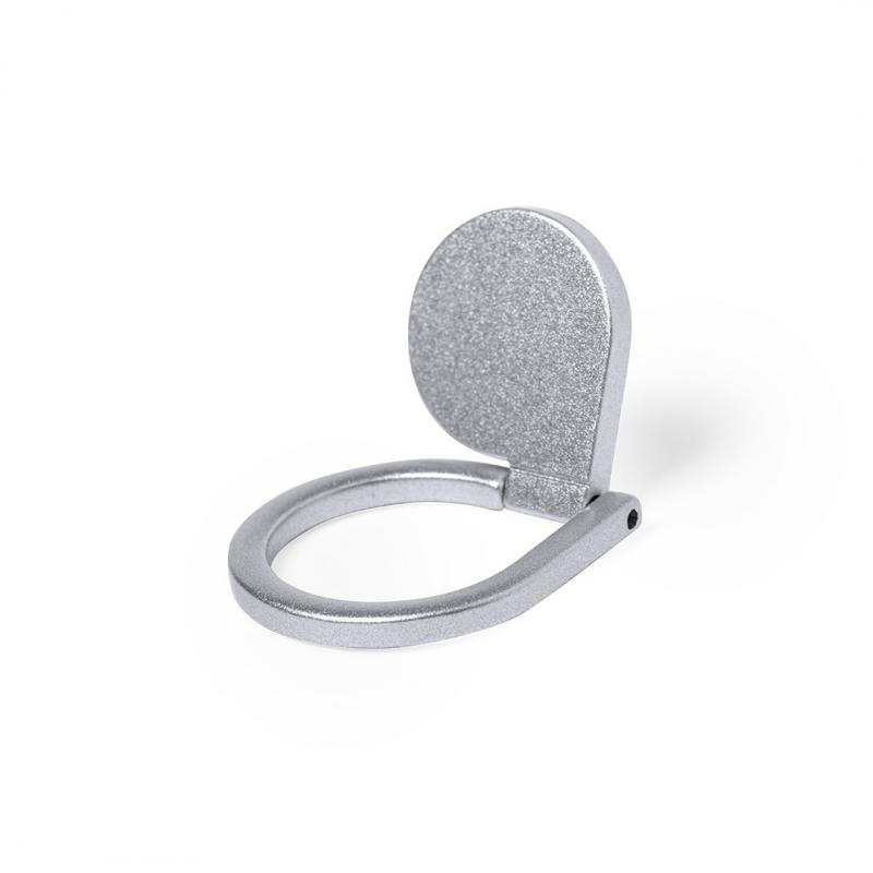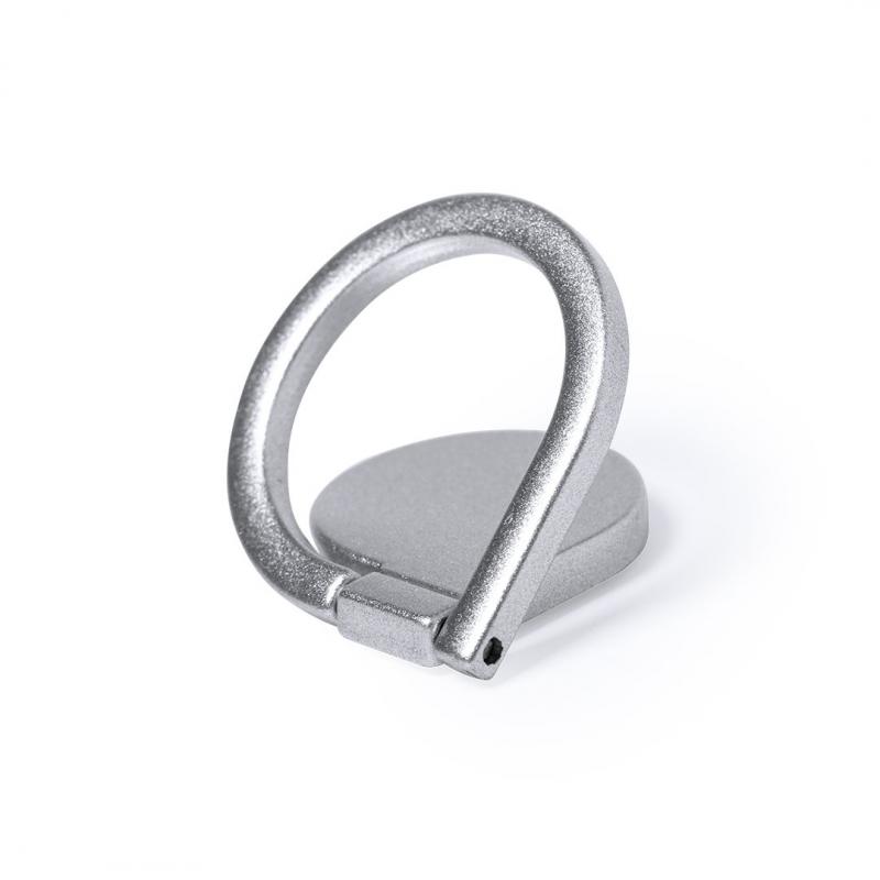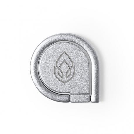 Soporte metálico para smartphone en acabado mate. De elegante diseño y con adhesivo 3M, de fijación extra fuerte y libre de residuos al despegarlo del dispositivo. Con anilla soporte posterior para dedo y presentado en bolsita individual de diseño.