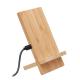 Soporte de carga inalámbrica de doble bobina en bambú. Coloca el teléfono sobre él para comenzar la carga. Incluye 2 piezas, requiere montaje. Salida: DC 9V/1.1A (10W) para una carga rápida. Compatible con los últimos Android, iPhone® 8, X y más recientes.