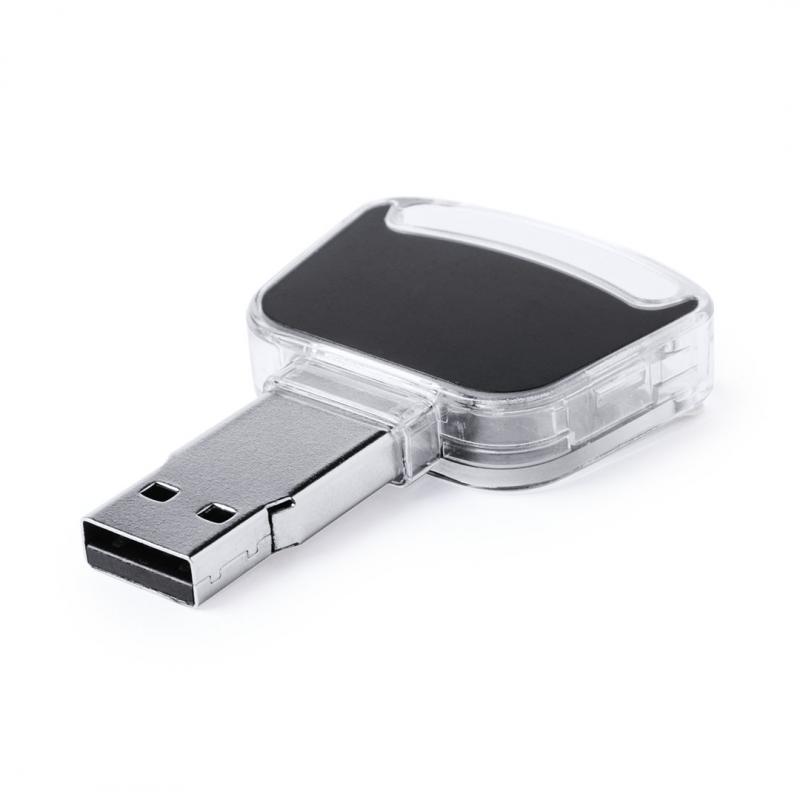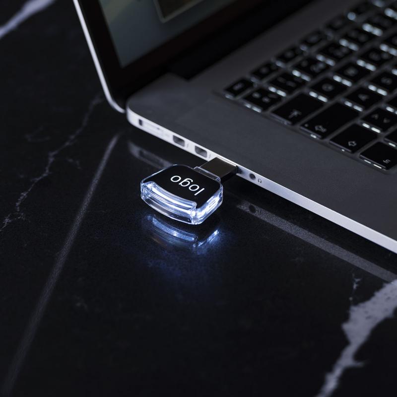 Memoria USB de 16GB de capacidad. De innovador diseño automovilístico, con luz led interior y cuerpo especialmente diseñado para marcaje en láser, iluminando así el logotipo. Presentada en estuche individual.