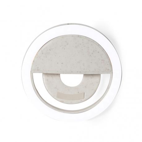 Anillo de luz LED para smartphone, fabricado en resistente caña de trigo. Ajustable a cualquier smartphone, con 36 LEDs y 3 niveles de intensidad de luz. Batería de 80 mAh y recargable por USB (cable Micro USB incluido). Presentado en atractiva caja de diseño, con manual de instrucciones disponible en español e inglés.La caña de trigo fomenta la utilización de materias primas naturales, reduciendo así las emisiones contaminantes.