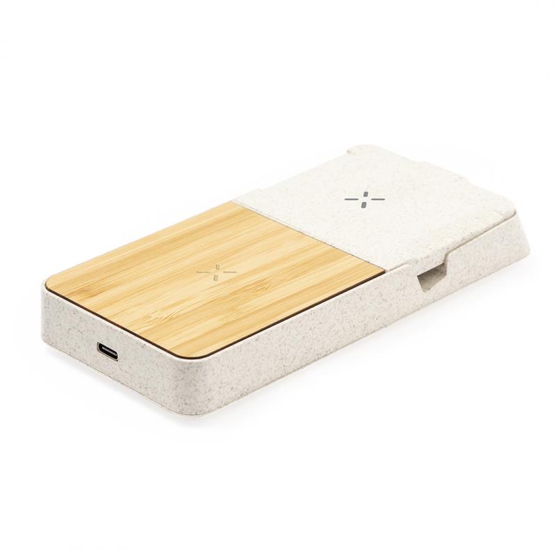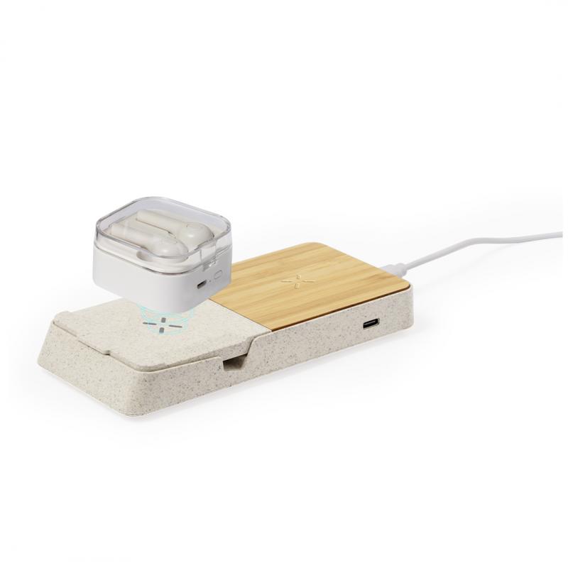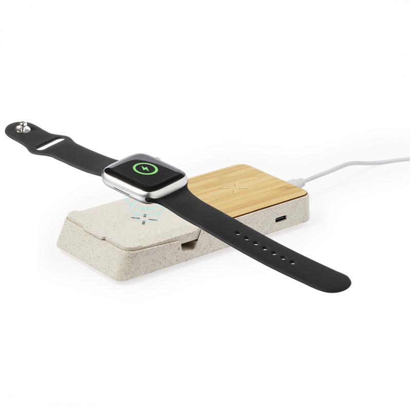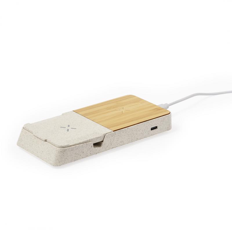 Completo cargador inalámbrico 15W con soporte fabricado en combinación de caña de trigo y bambú. Diseñado para la carga simultánea del smartphone o smartwatch, y auriculares, tanto de forma inalámbrica como a través de su puerto Tipo C: una estación de carga todo en uno, versátil y con soporte para smartphone o tablet. Presentada en atractiva caja individual de diseño kraft y disponible manual de instrucciones en español e inglés.La caña de trigo fomenta la utilización de materias primas naturales, reduciendo así las emisiones contaminantes.Materiales como el bambú fomentan la utilización de materias primas naturales, reduciendo las emisiones contaminantes. Proviene de una planta de gran resistencia y versatilidad, con crecimiento y regeneración rápidos, siendo una excelente alternativa al uso de madera tradicional.Fabricado conforme a los estándares RoHS y en cumplimiento con los siguientes requisitos de seguridad:Sistema de protección contra sobrecalentamiento.Sistema de protección contra sobrecarga.Sistema de bloqueo para evitar cortocircuitos.