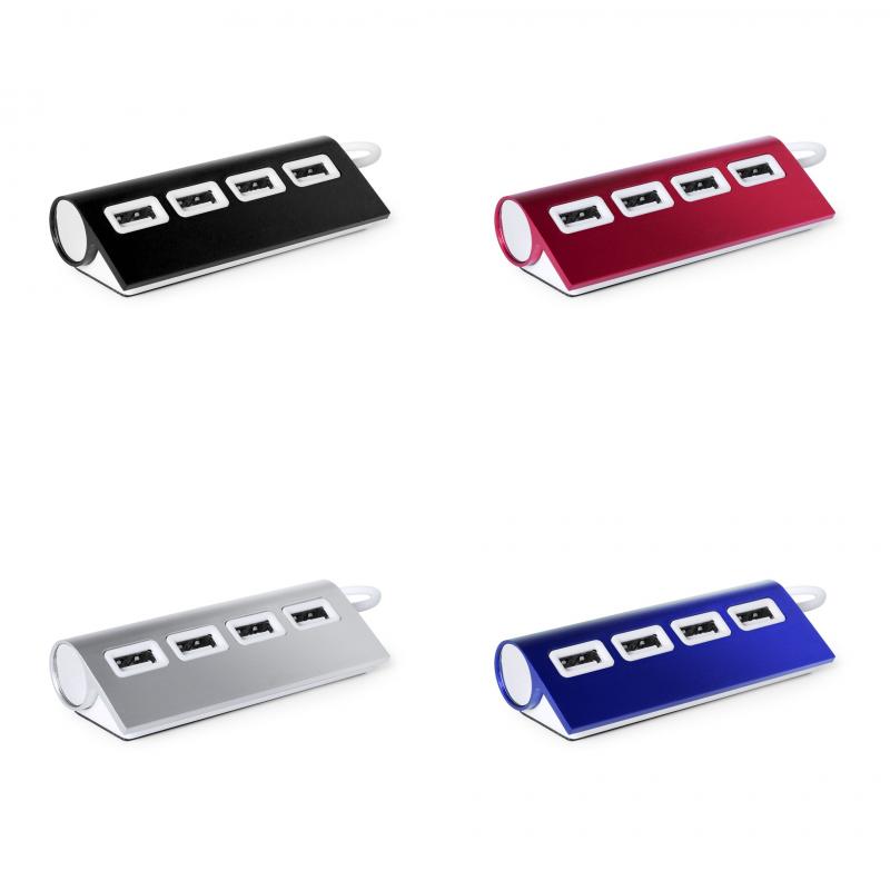 Puerto USB de diseño bicolor y elegante acabado en aluminio. Incorpora 4 puertos USB 2.0 para conectar multitud de dispositivos y está especialmente diseñado para marcaje en láser. Presentado en caja individual.
