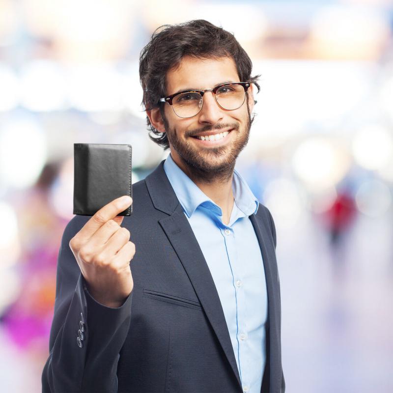 Tarjetero con tecnología de seguridad RFID (Identificación por Radio Frecuencia) que mantiene seguros tus dispositivos de transmisión de identidad. De elegante diseño, suave acabado en polipiel negra y con 8 compartimentos. Presentado en caja individual.