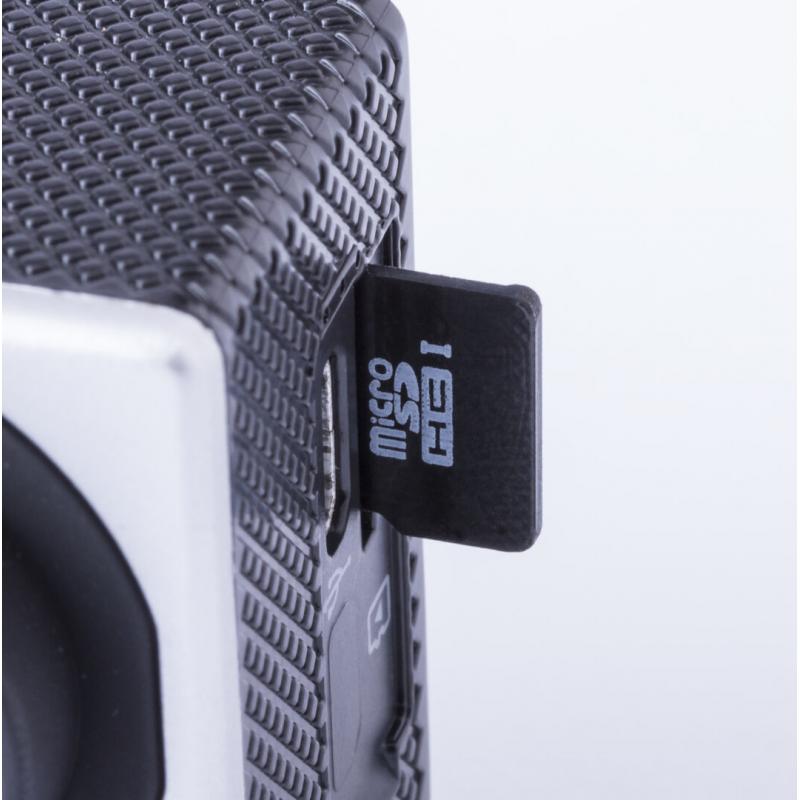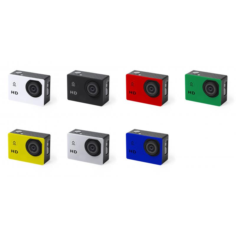 Cámara deportiva de alta calidad de captura de vídeo HD 720p, de diseño compacto y resistente, especialmente diseñada para uso intensivo. Incluye carcasa sumergible hasta 30m de profundidad y multitud de accesorios para ajuste en casco, manillar o cinturón, así como correas ajustables para cabeza y torso o un adaptador giratorio de 360º. La versatilidad y resistencia de esta cámara deportiva la convierten en el gadget perfecto para capturar, con una calidad excepcional, cualquier actividad deportiva. Con función cámara de fotos Full HD 1080p, ranura para tarjetas micro SD de hasta 32 GB de capacidad, sistema multilenguaje, y recargable mediante cable microUSB -incluido-. Presentada en atractiva caja de diseño.