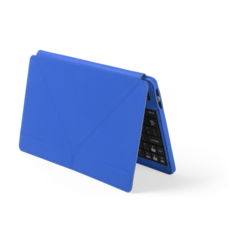 Teclado Bluetooth® con función soporte para tablet en suave acabado de polipiel. De diseño compacto, en atrevidos colores y recargable mediante cable mini USB -incluido-. Compatible con cualquier sistema operativo y presentado en atractiva caja de diseño.