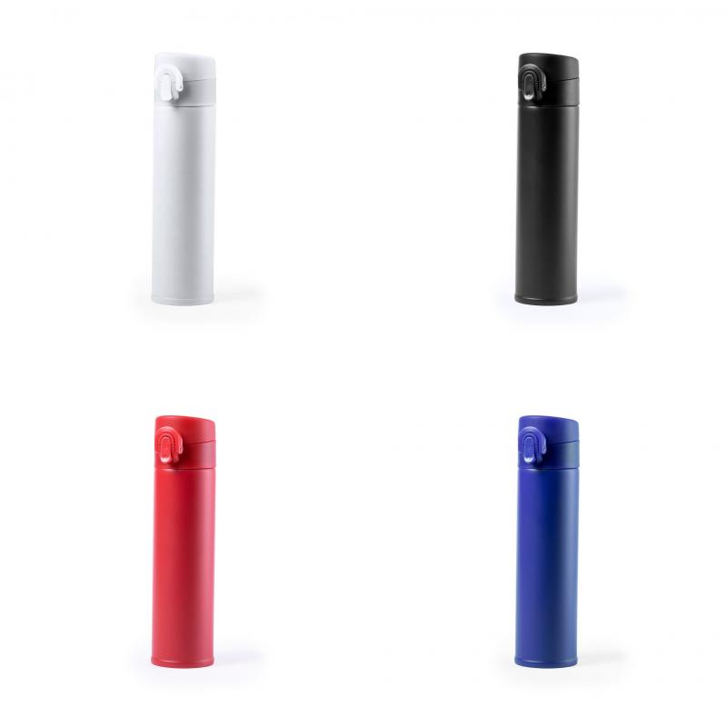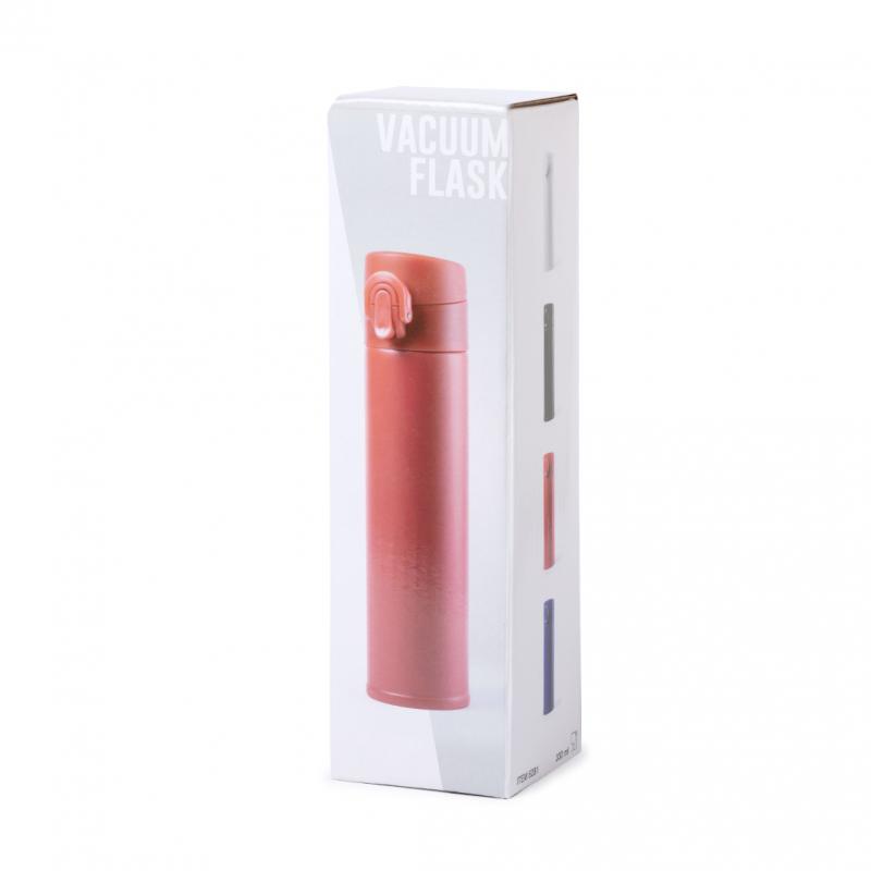 Termo en acero inox de 330ml de capacidad. Con doble cobertura para mejor y mas duradera conservación de la temperatura y con sistema de apertura fácil con botón. Disponible en variada gama de colores y presentado en atractiva caja de diseño.