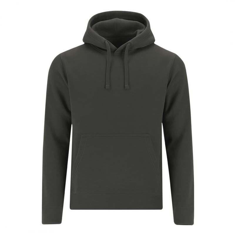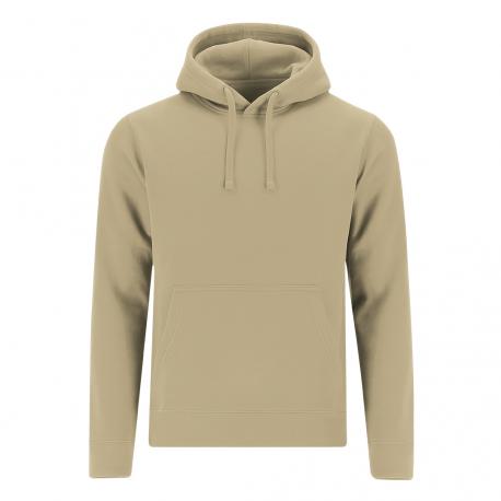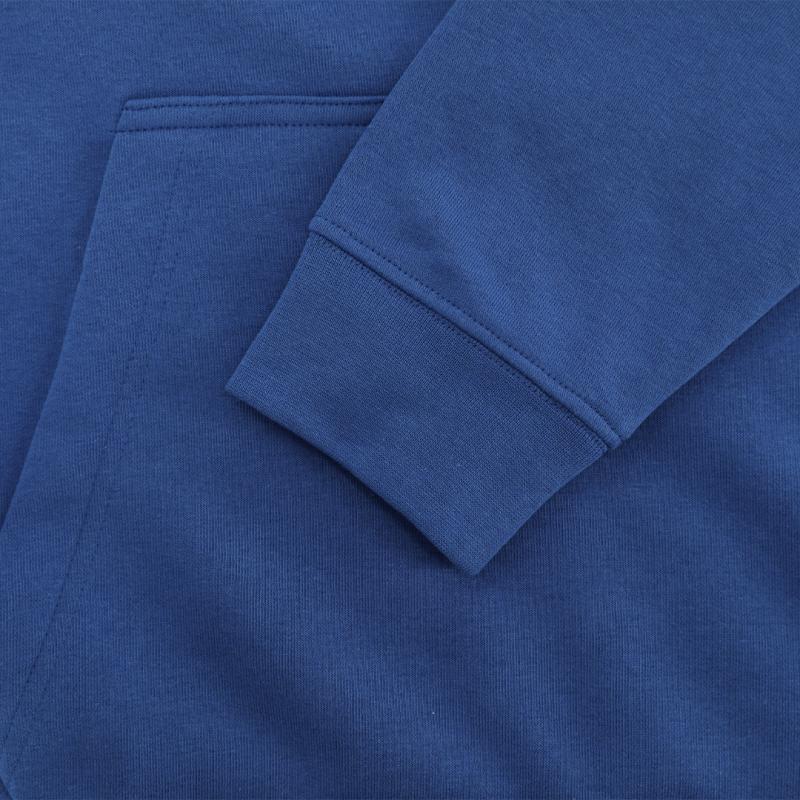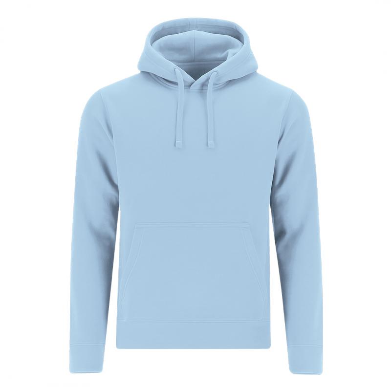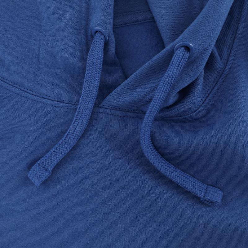 Sudadera con capucha forrada a tono de doble tejido. Confeccionada en algodón y poliester en suave felpa perchada de 280 g/m2. Con Bolsillo tipo canguro. Cordón ajustable y ojales metálicos a tono. Cubrecosturas en el cuello. Puños y la cintura en punto canalé 1x1 con elastano para mayor ajuste y confort.