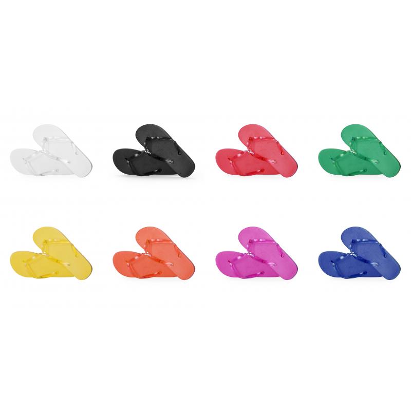Par de chanclas fabricadas en EVA y PVC. Suela hecha de resistente EVA para una alta durabilidad y tiras ergonómicas fabricadas en PVC a juego. Disponibles en una variada gama de colores vibrantes adaptándose a cualquier estilo. Tallas 36-38 y 42-44.