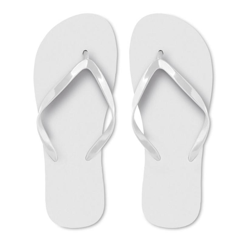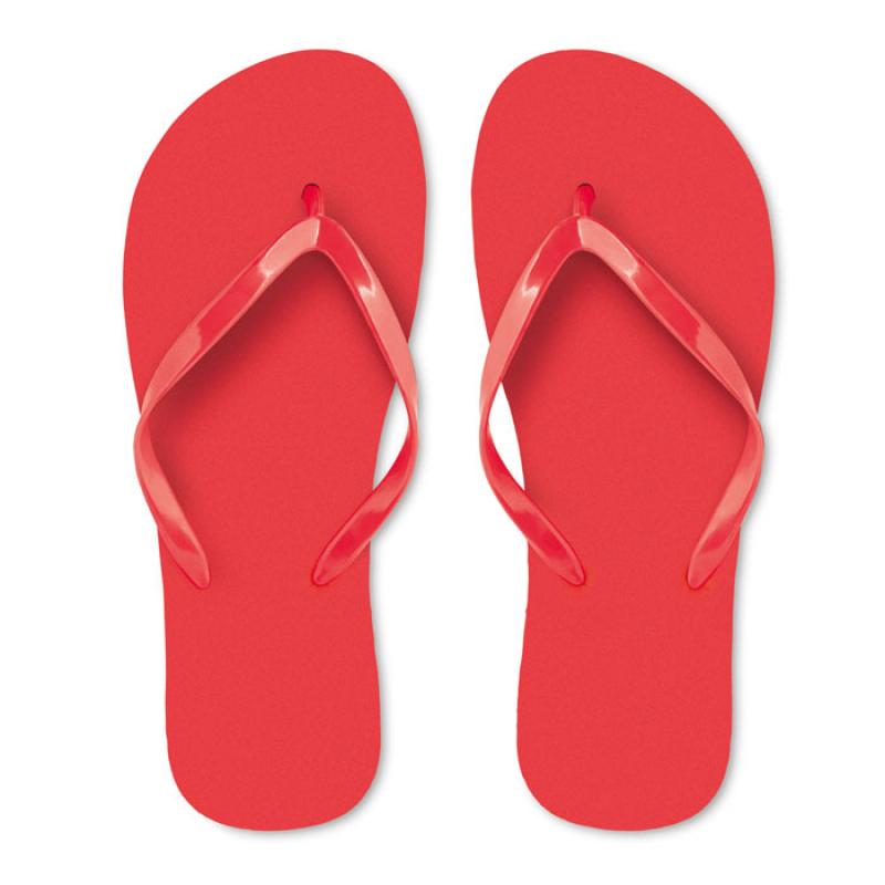 Chanclas de playa en PE con tiras en PVC. 2 tallas disponibles, M para 36-39 y L para 40-43.Recipiente :