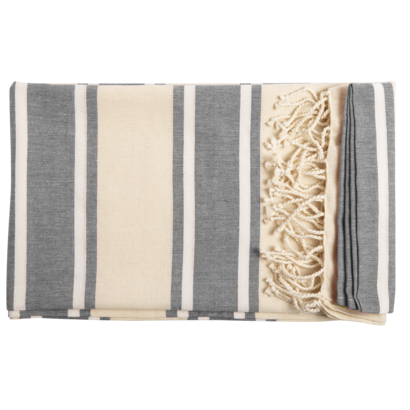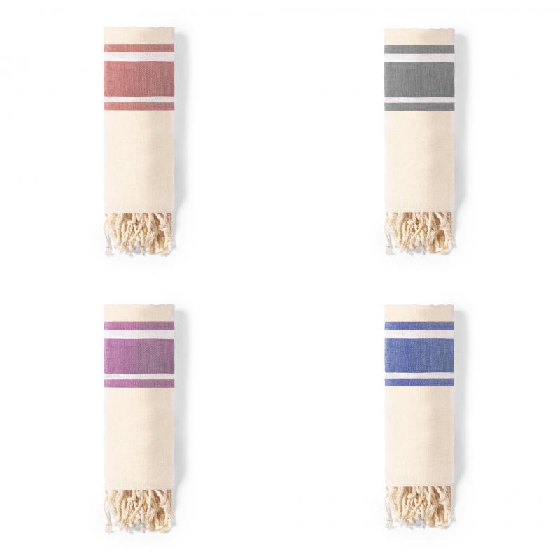 Pareo toalla 2 en 1 en algodón orgánico de 110g/m2. Tamaño 180 x 90 cm y disponible en variada gama de colores combinados. Distintivo organic en etiqueta.
