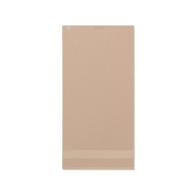 Toalla de rizo de algodón orgánico 100% de 360 gr. Tamaño 100x50 cm. El rizo es suave y absorbente. Producido bajo certificado estándar para controlar el uso de sustancias nocivas en textil.
