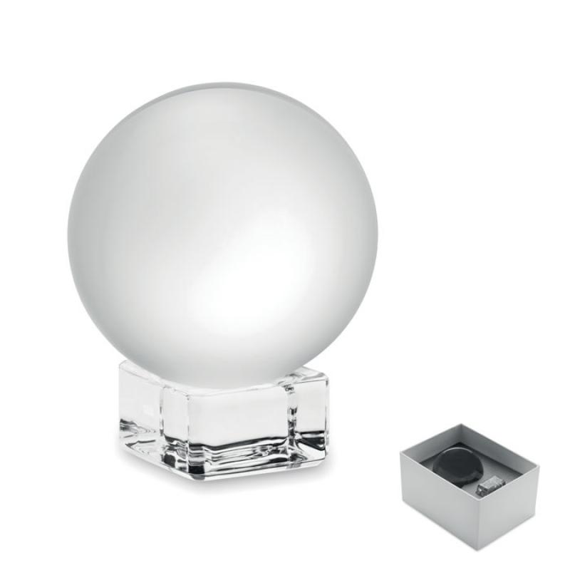 Premio o trofeo redondo de cristal con base. Presentado en caja de regalo.Recipiente :
