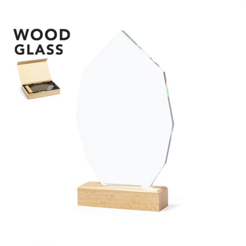Placa conmemorativa fabricada en cristal grueso y resistente, con base en madera natural. Presentada en estuche de protección kraft, con cierre magnético y espuma interior.