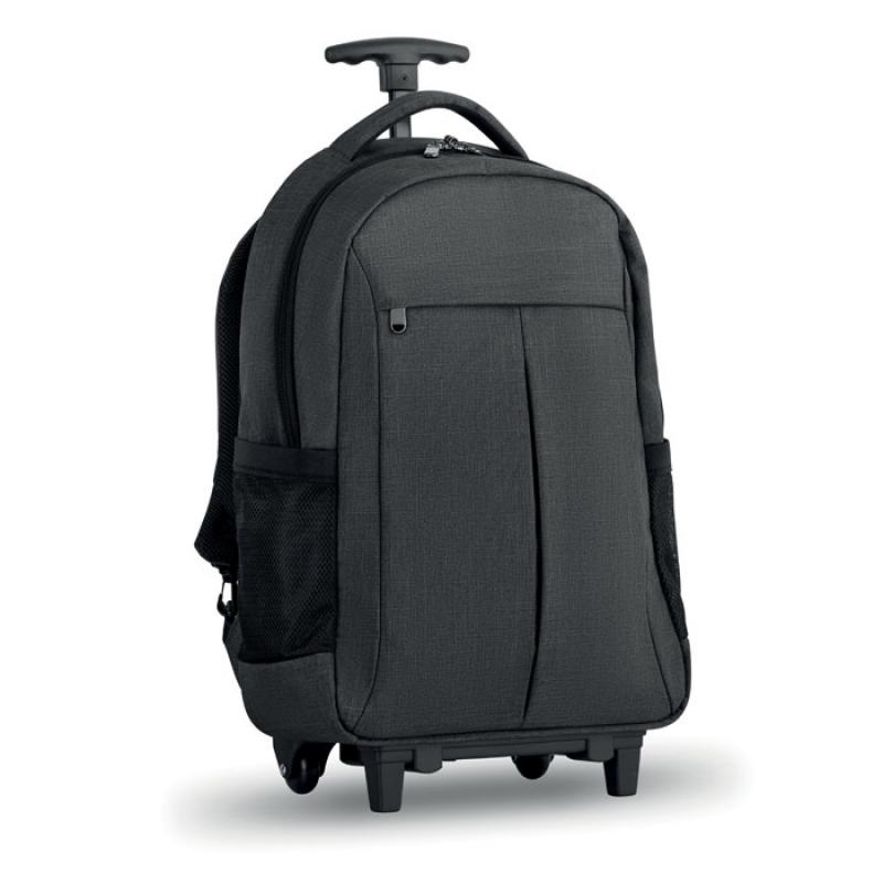 Mochila trolley en 2 colores. Compartimento para portátil de 15'' y compartimento para Tablet. Bolsillo frontal con cremallera. Acolchado en parte trasera y en correas. Poliéster 360D.